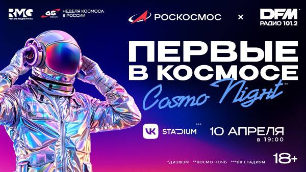 10 апреля в VK Stadium* пройдет масштабное аудиовизуальное шоу «Первые в космосе. Cosmo Night*», организованное Роскосмосом и Радио DFM (входит в «Русскую Медиагруппу») в рамках Недели космоса. Событие станет бесплатным и объединит более 5 тысяч участников для погружения в атмосферу космического приключения.