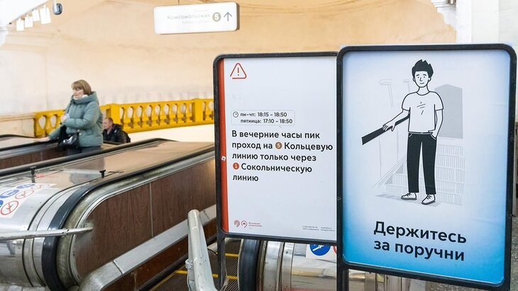 На каждой станции размещены яркие предупреждающие стикеры Столичный метрополитен продолжает улучшать визуальную навигацию для пассажиров. На станции «Комсомольская» появились акцентные стикеры, которые напоминают о правилах пользования эскалаторами. Наклейки призывают держаться за поручни, не оставлять багаж без присмотра и крепче держать детей за руку. Инициатива уже доказала свою эффективность — с 2022 года подобные материалы помогают