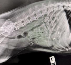 Обошлось без операции В Советскую ветклинику Москвы привезли французского бульдога по кличке Смайл. Хозяева подозревали, что собака съела игрушечного дракона. Однако после УЗИ и рентгена, которые провели терапевт Алексей Щукин и УЗ-диагност Елена Сухарева, выяснилось: внутри животного находится больше одного предмета. Поскольку бульдога доставили сразу после происшествия, обошлось без операции. Врачи вызвали медикаментозную рвоту и