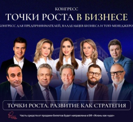 15 апреля в отеле Four Seasons Moscow Hotel соберется бизнес-элита для участия в ежегодном деловом событии «Точки роста в бизнесе». Мероприятие, объединяющее собственников компаний, топ-менеджеров и признанных экспертов рынка, традиционно проходит при поддержке «Русской Медиагруппы». Главная цель конгресса – предоставить участникам эффективные инструменты для формирования единой стратегии управления и развития бизнеса, что в условиях текущей