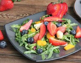 Фруктовый салат с манго и клубникой — отличный вариант легкого и освежающего десерта. Вот простой рецепт: Ингредиенты: Инструкции: Этот фруктовый салат отличается сочными вкусами и подходит как в качестве десерта, так и как легкого летнего угощения.