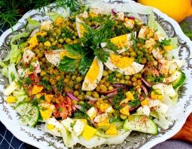 Этот салат с тунцом, горошком, яйцом и пекинской капустой предложит вам сочетание белка, витаминов и вкуса. Вот простой рецепт: Ингредиенты: Для салата: Для заправки: Инструкции: Этот салат не только вкусен, но и обладает хорошей питательной ценностью за счет белка из тунца и яиц, витаминов и клетчатки из пекинской капусты и горошка. Приятного аппетита!