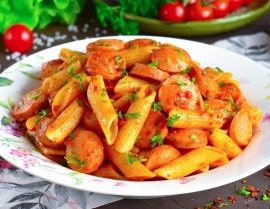 Вот простой рецепт приготовления макарон с сосисками на сковороде: Ингредиенты: Инструкции: Этот рецепт предоставляет быстрый и вкусный вариант обеда или ужина с использованием макарон, сосисок и ароматного томатного соуса.
