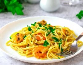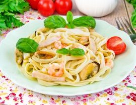 Вот простой и вкусный рецепт спагетти с морепродуктами в сливочном соусе: Ингредиенты: Инструкции: Этот рецепт создает насыщенное и ароматное блюдо, которое обязательно понравится любителям морепродуктов. Приятного аппетита!