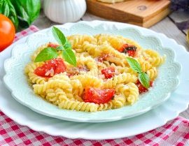 Вот простой рецепт приготовления пасты с сыром и помидорами: Ингредиенты: Инструкции: Этот рецепт создает простое, но вкусное блюдо, которое отлично подходит для быстрого обеда или ужина.