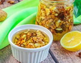 Грецкие орехи, запеченные с медом и лимоном, — это вкусное угощение, которое можно подавать как закуску к чаю или кофе. Вот простой рецепт: Ингредиенты: Инструкции: Готовые орехи можно подавать в красивой посуде и наслаждаться вкусом этого великолепного угощения. Это отличная закуска для чаепития или прекрасное дополнение к десертам.