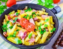 Приготовление картошки с беконом на сковороде — это простой и вкусный способ приготовления пикантного блюда. Вот пример рецепта: Ингредиенты: Инструкции: Блюдо готово к подаче! Подавайте горячим как гарнир или отдельным блюдом.