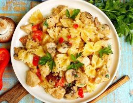 Вот рецепт макарон с курицей и грибами: Ингредиенты: Инструкции: Это блюдо отлично подходит для ужина и обеда, создавая насыщенный и вкусный обед или ужин.
