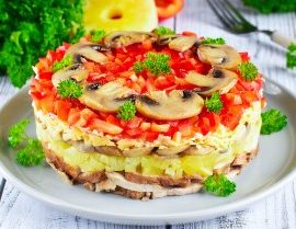 Вот простой и вкусный рецепт салата с грибами, ананасом и сыром: Ингредиенты: Инструкции: