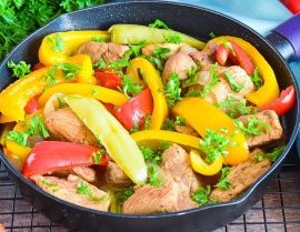 Вот простой рецепт для приготовления свинины с болгарским перцем на сковороде: Ингредиенты: Инструкции: