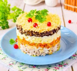 Вот простой рецепт салата с курицей, грибами, морковью и яйцами: Ингредиенты: Инструкции: Этот салат получается сытным и вкусным, а сочетание куриного мяса, грибов, моркови и яиц придает ему разнообразие в текстуре и вкусе. Приятного аппетита!