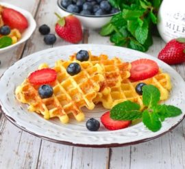Вот простой рецепт творожных вафель, подходящих для принципов полезного питания (ПП): Ингредиенты: Инструкции: Эти творожные вафли, приготовленные на основе овсянки и творога, предоставляют белок, клетчатку и некоторые другие полезные элементы питания, что делает их отличным выбором для полезного завтрака или легкого перекуса.