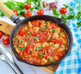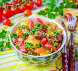 Вот простой рецепт приготовления мяса с болгарским перцем и помидорами: Ингредиенты: Инструкции: Это блюдо можно подавать с картошкой, рисом или другими гарнирами по вашему выбору.