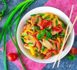 Вот простой рецепт курицы с овощами в кисло-сладком соусе: Ингредиенты: Инструкции: Это блюдо отличается сочным вкусом и ароматом, и его можно подавать с рисом или лапшой.