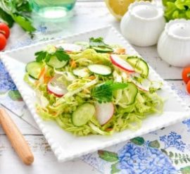 Вот простой и свежий рецепт весеннего салата из капусты, моркови и огурцов: Ингредиенты: Для заправки: Инструкции: Этот весенний салат отличается яркими цветами и свежим вкусом. Он идеально подходит в качестве легкого обеда или ужина, а также отлично сочетается с различными видами мяса или рыбы.