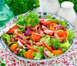 Салат с фасолью и овощами — это легкое, освежающее и питательное блюдо, которое можно приготовить с разнообразными овощами. Вот один из вариантов рецепта: Ингредиенты: Инструкции: 2. В маленькой миске приготовьте дрессинг, смешав сок лимона, оливковое масло, соль и перец. 3. Полейте приготовленным дрессингом овощной салат и аккуратно перемешайте, чтобы все ингредиенты равномерно пропитались. 4. Посыпьте