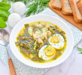 Щавелевый борщ с яйцом — это вкусное и освежающее блюдо, которое обычно готовится весной или летом, когда щавель доступен. Вот рецепт: Ингредиенты: Инструкции: 7. Посолите и поперчите борщ по вкусу. 8. Подавайте щавелевый борщ горячим, посыпанным нарезанными вареными яйцами и при желании с добавлением сметаны или йогурта для большей нежности и кислотности. Этот борщ обладает
