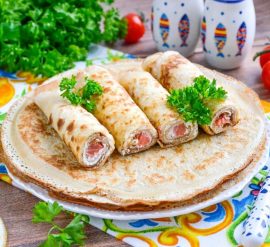 Блины с красной рыбой и творожным сыром — это изысканное блюдо, которое можно подавать как закуску на праздничный стол или легкий обед. Вот рецепт: Ингредиенты: Для блинов: Для начинки: Инструкции: 2. Разогрейте сковороду с антипригарным покрытием и смажьте ее немного маслом. 3. Вылейте небольшое количество теста в сковороду и равномерно распределите его, чтобы создать тонкий