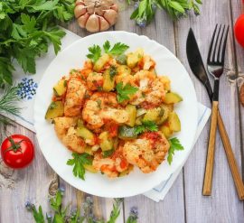 Кабачки с куриной грудкой, сыром и помидорами, запеченные в духовке, — это вкусное и сытное блюдо. Вот рецепт: Ингредиенты: Инструкции: 2. В глубокой сковороде разогрейте оливковое масло и обжаривайте куриную грудку до золотистой корки. Убедитесь, что она приготовилась хорошо с обеих сторон. Удалите куриную грудку из сковороды. 3. Нарежьте кабачки на тонкие кольца и помидоры