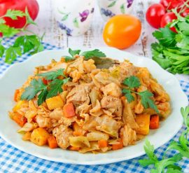 Приготовление мяса с капустой и картошкой на сковороде — это простой и вкусный способ приготовления ужина. Вот рецепт: Ингредиенты: Инструкции: 8. Подавайте горячим. Это блюдо можно подавать как самостоятельное, либо в качестве гарнира к вашему выбору. Это блюдо мяса с капустой и картошкой на сковороде получается сытным и вкусным, и оно идеально подходит для семейных