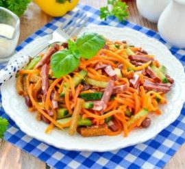 Салат с корейской морковью, колбасой и фасолью — это аппетитное и сытное блюдо. Вот рецепт этого салата: Ингредиенты: Инструкции: 2. Добавьте майонез и оливковое масло. Тщательно перемешайте, чтобы все ингредиенты равномерно пропитались соусом. 3. По желанию, приправьте салат солью и перцем по вкусу. Обычно корейская морковь уже достаточно приправлена, так что будьте осторожны с солью.