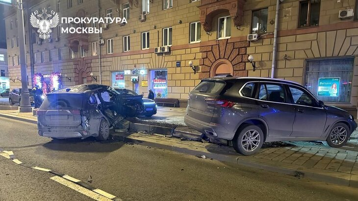 Авария произошла ночью 20 апреля на улице Садовая-Черногрязская. Автомобиль Mercedes столкнулся с электровелосипедом и такси, после чего наехал на место проведения ремонтных работ и врезался ещё в две машины.