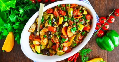Вот простой рецепт овощного рагу в духовке с мясом и картошкой: