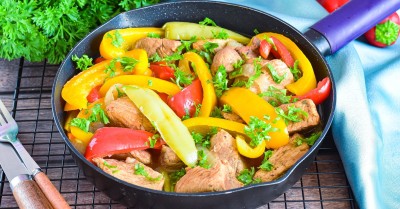 Вот простой рецепт для приготовления свинины с болгарским перцем на сковороде:
